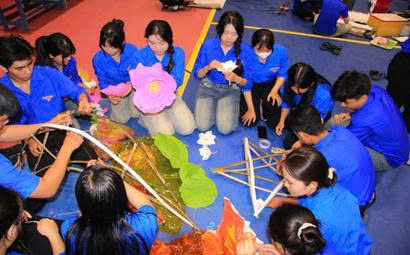 Ảnh: Các đội thi đang tập trung hoàn thiện sản phẩm lồng đèn