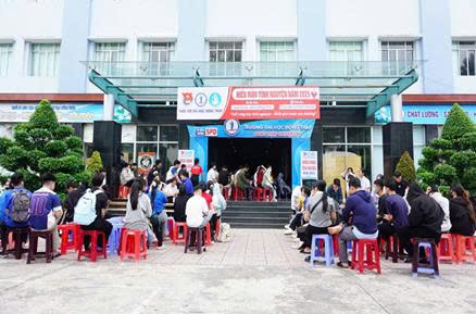 Ảnh: Không khí sôi nổi khi bắt đầu hoạt động hiến máu tại Trường Đại học Đồng Tháp năm 2025