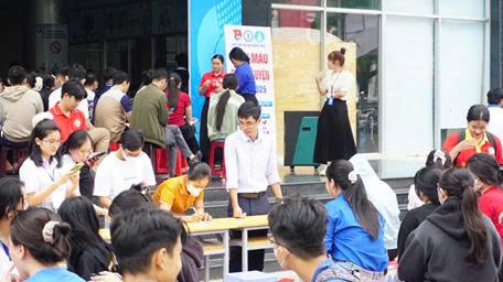 Ngay từ 7 giờ sáng, khu vực hiến máu đã trở nên nhộn nhịp với sự có mặt của đông đảo viên chức và sinh viên đến tham gia đăng ký, kiểm tra sức khỏe và thực hiện hiến máu. Sự chủ động, nhiệt tình của người tham gia cùng thái độ làm việc chuyên nghiệp của lực lượng hỗ trợ đã tạo nên không khí sôi nổi và tích cực. Đội hình tình nguyện viên được bố trí tại từng khu vực đã hỗ trợ người hiến máu trong suốt quá trình từ hướng dẫn thủ tục, phân luồng đến chăm sóc sau hiến máu, đảm bảo mọi khâu diễn ra an toàn, đúng quy trình.
