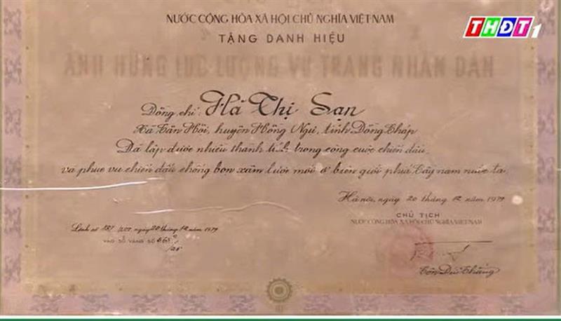 Hình ảnh danh hiệu "Anh hùng Lực lượng Vũ trang nhân dân" của bà