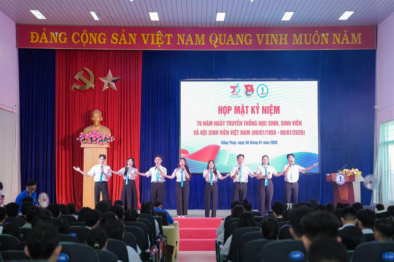 Sáng ngày 08/01/2026, tại Trường Đại học Đồng Tháp, Ban Chấp hành Đoàn Thanh niên – Ban Chấp hành Hội Sinh viên Trường Đại học Đồng Tháp phối hợp cùng Ban Thường vụ Tỉnh đoàn Đồng Tháp tổ chức Chương trình kỷ niệm 76 năm Ngày truyền thống Học sinh, sinh viên và Hội Sinh viên Việt Nam (09/01/1950 – 09/01/2026). Chương trình được tổ chức nhằm ôn lại truyền thống 76 năm vẻ vang của phong trào học sinh, sinh viên Việt Nam; tuyên truyền, giáo dục lý tưởng cách mạng; tạo môi trường giao lưu, rèn luyện kỹ năng, phát huy tinh thần xung kích, sáng tạo của sinh viên.