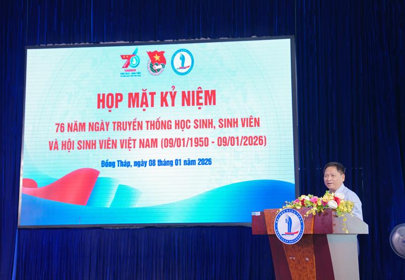 Tại buổi lễ, thầy Cao Dao Thép – Phó Bí thư Thường trực Đảng ủy, Phó Hiệu trưởng Trường Đại học Đồng Tháp đã phát biểu ôn lại chặng đường 76 năm hình thành và phát triển của phong trào học sinh, sinh viên Việt Nam. Thầy nhấn mạnh ngày 09/01/1950 là dấu mốc lịch sử quan trọng, thể hiện tinh thần yêu nước và khát vọng cống hiến của các thế hệ học sinh, sinh viên; đồng thời ghi nhận những nỗ lực của sinh viên Trường Đại học Đồng Tháp trong học tập, nghiên cứu khoa học, hoạt động tình nguyện và phong trào sinh viên.